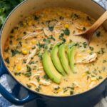 A creamy and flavorful white chicken chili made with tender chicken, cannellini beans, green chilies, and a blend of warming spices. This comforting dish is enriched with light Neufchatel cheese for a smooth texture and freshened up with lime juice and cilantro. Perfect for a satisfying dinner served with optional toppings like Monterrey Jack cheese, avocado, and tortilla chips.